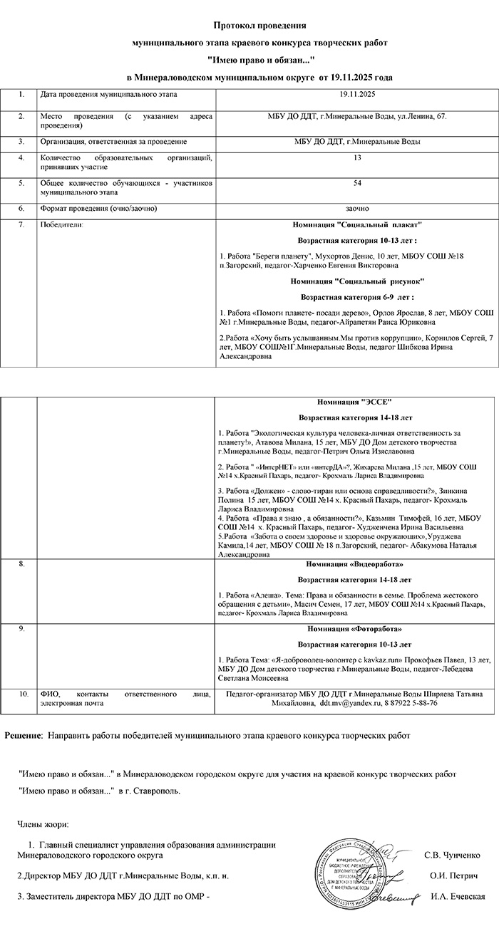 Итоговая таблица муниципального этапа конкурса творческих работ «Имею право и обязан…»