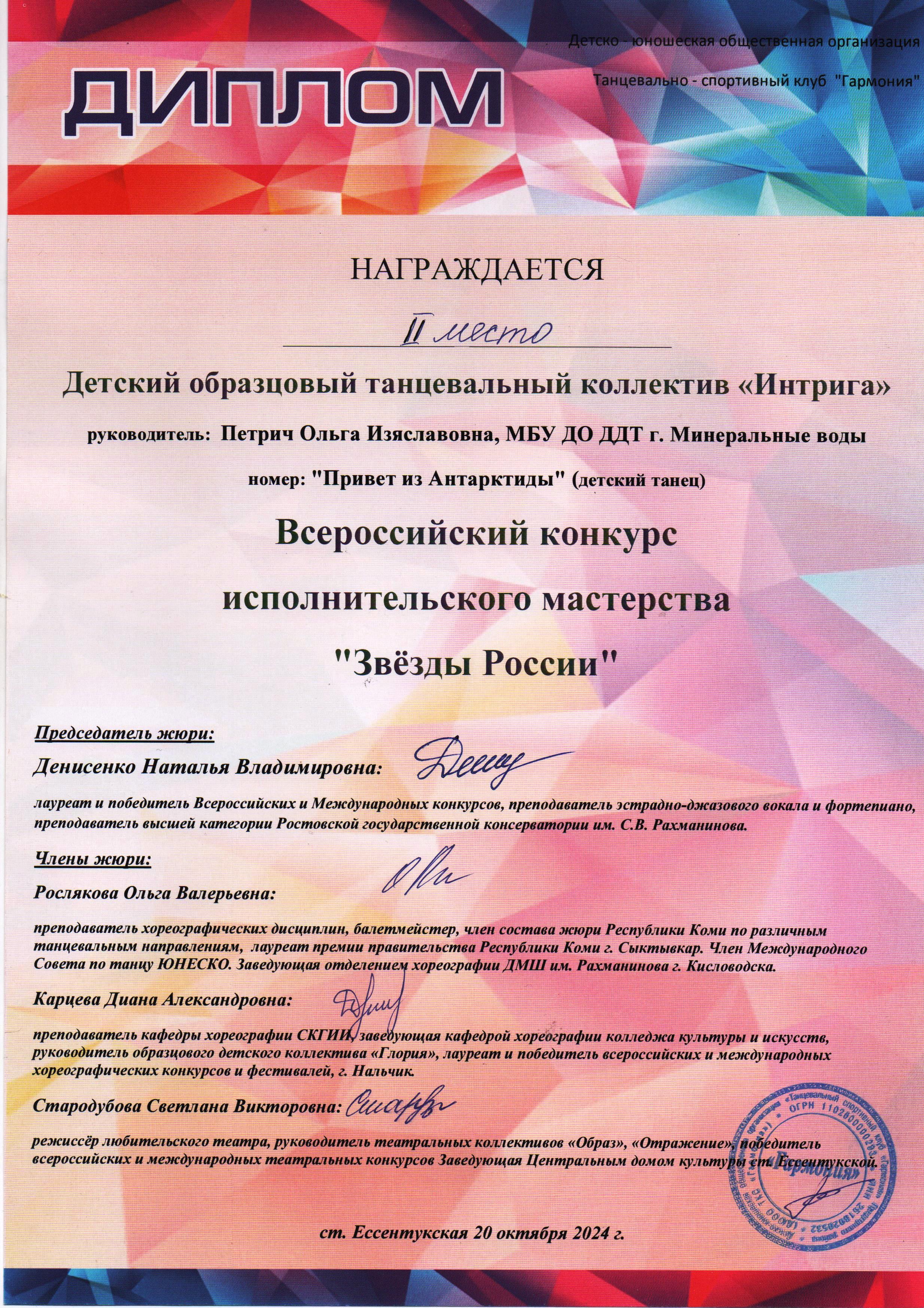 Всероссийский конкурс исполнительского мастерства «Звёзды России» 20.10.2024г.