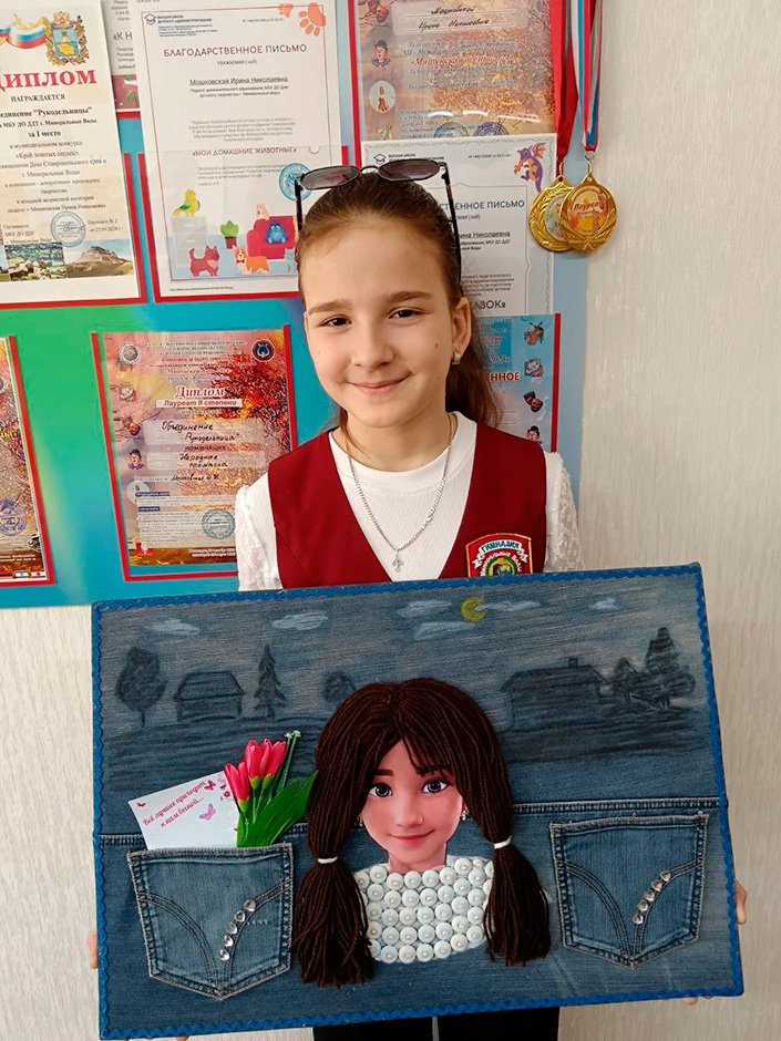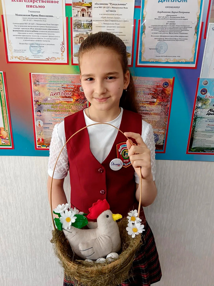 краевых,муниципальных Всероссийских и Международных, занимая первые места. -Международный конкурс "Весенняя карусель", 2025г.- 1 место; -Краевой конкурс "Калейдоскоп идей", 2024г-1 место; -Всероссийский конкурс Высшая школа делового администрирования "Русские народные промыслы"-1 место; - Краевой конкурс "Калейдоскоп идей", 2025г-2 место; -Муниципальный конкурс " Свет материнства "-1 место; -Окружной конкурс " Рождественская звезда "- 1 место.