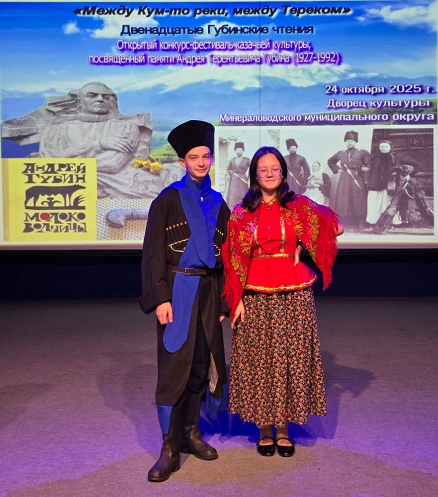 XII Губинские чтения «Между Кум-то реки, между Тереком»2025-10-24 16:44:0024 октября во Дворце культуры ММО состоялись XII Губинские чтения «Между Кум-то реки, между Тереком» - открытый конкурс-фестиваль казачьей культуры в рамках празднования 98-й годовщины со дня рождения казачьего писателя Андрея Терентьевича Губина. Этот фестиваль совместный проект Пятигорской и Черкесской епархии Русской Православной Церкви и Фонда «Терское общество любителей казачьей старины. Конкурс - фестиваль собрал около 200 участников – это самодеятельные творческие коллективы и отдельные исполнители в номинациях: «Театральная постановка», «Казачья песня», «Художественное чтение», «Видеоролик». Цель фестиваля – развитие казачьей культуры, сохранение и передача потомкам традиций и обычаев терских казаков, знакомство с творчеством Андрея Губина. В фестивале приняли участие обучающиеся театрального коллектива «Непоседы» Асанова Милана и Ткачев Арсений в номинации «Художественное чтение» (педагог Ечевская Инна Анатольевна). Мы поздравляем ребят с заслуженными наградами. Милана Асанова – лауреат 1 степени Арсений Ткачев – лауреат 2 степени Методист Станчу Н.Н. |