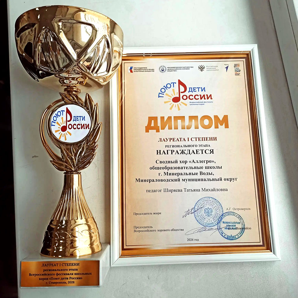 "Поют дети России"краевой этап Всероссийского конкурса2026-04-25 11:36:0022 апреля сводный хор "Аллегро" Дома детского творчества г.Минеральные Воды, стал Лауретом 1 степени на региональном этапе Всероссийского конкурса "Поют дети России", который прошел в Краевом центре развития творчества детей и юношества имени Ю.А.Гагарина в Ставрополе. В сводный хор Минераловодского муниципального округа вошли ребята из СОШ 5 с.Прикумское, СОШ 111 и лицея 104 г.Минеральные Воды. Объединяет их то, что они занимаются на базе Дома детского творчества под руководством педагога Татьяны Михайловны Ширяевой. По результатам регионального этапа, "Аллегро" примет участие следующем, федеральном этапе конкурса "Поют дети России" по Северо- Кавказскому федеральному округу. В 2026 году фестиваль посвящен Году единства народов России. Хоры исполняют программу из трёх произведений, одно из которых - обработка песен народов России. Хор " Аллегро" исполнил обработку русской народной песни "Пойду ль, выйду ль я" а-капелла, а также песню В.Шаинского "Когда мои друзья со мной" и В.Мурадели "Бухенвальдский набат". Председатель жюри регионального этапа конкурса- Островерхов Александр Григорьевич, заведующий отделением «Хоровое дирижирование» Ставропольского краевого колледжа искусств. Всероссийский хоровой фестиваль- конкурс "Поют дети России" проводится Всероссийским хоровым обществом ежегодно с 2014 года на средства гранта Президентского фонда культурных инициатив. Педагог -организатор Ширяева Т.М. |