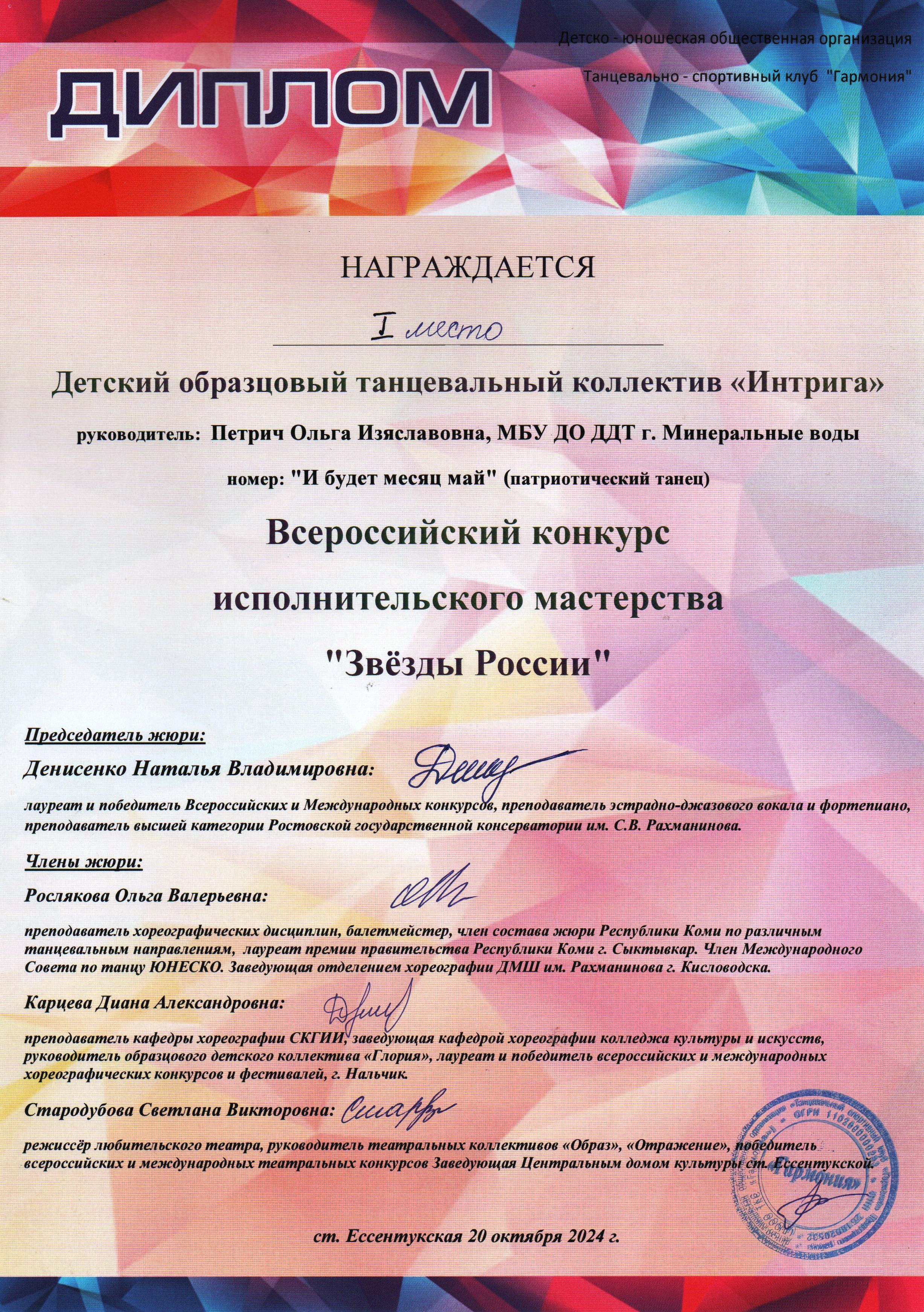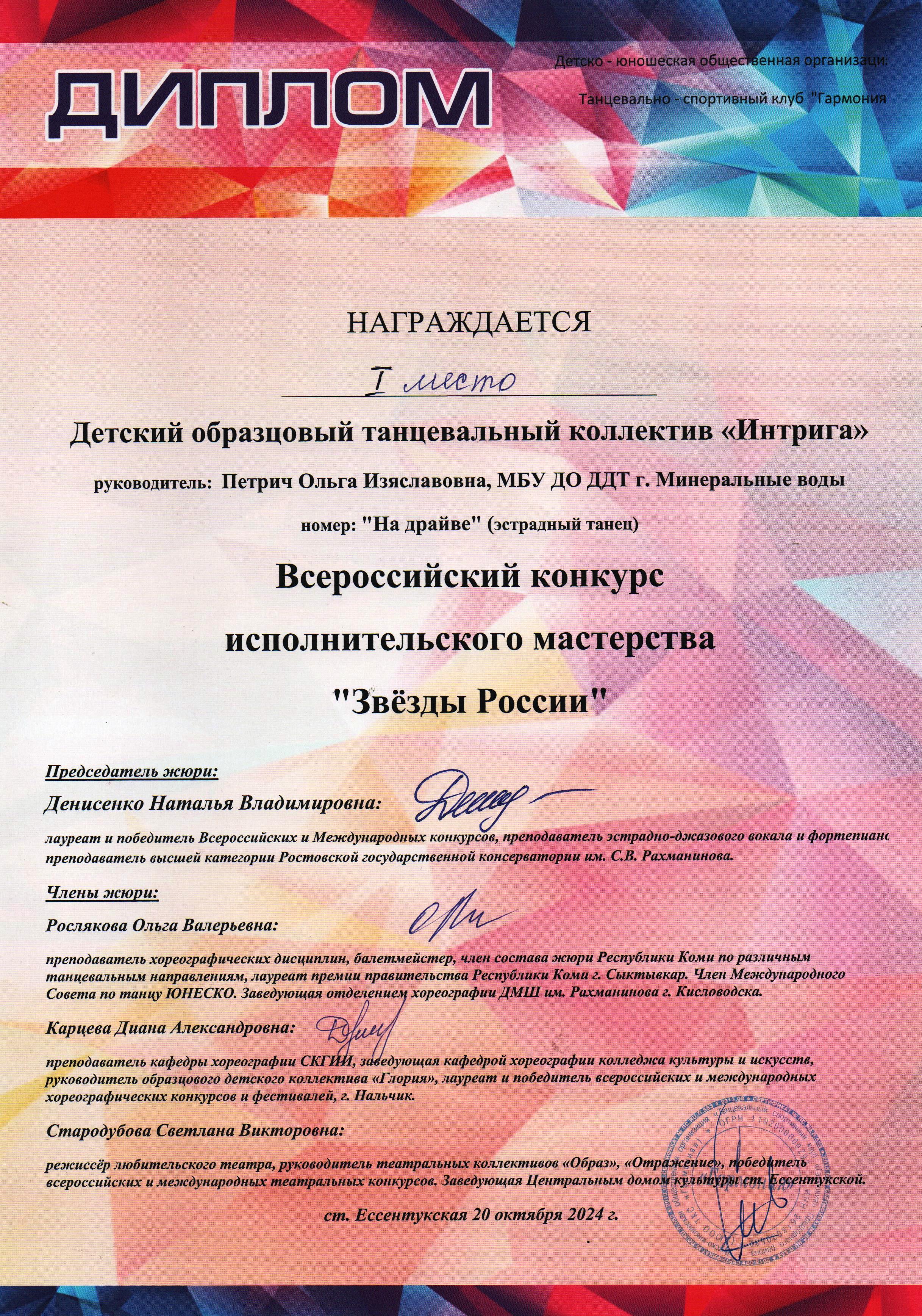 Всероссийский конкурс исполнительского мастерства «Звёзды России» 20.10.2024г.